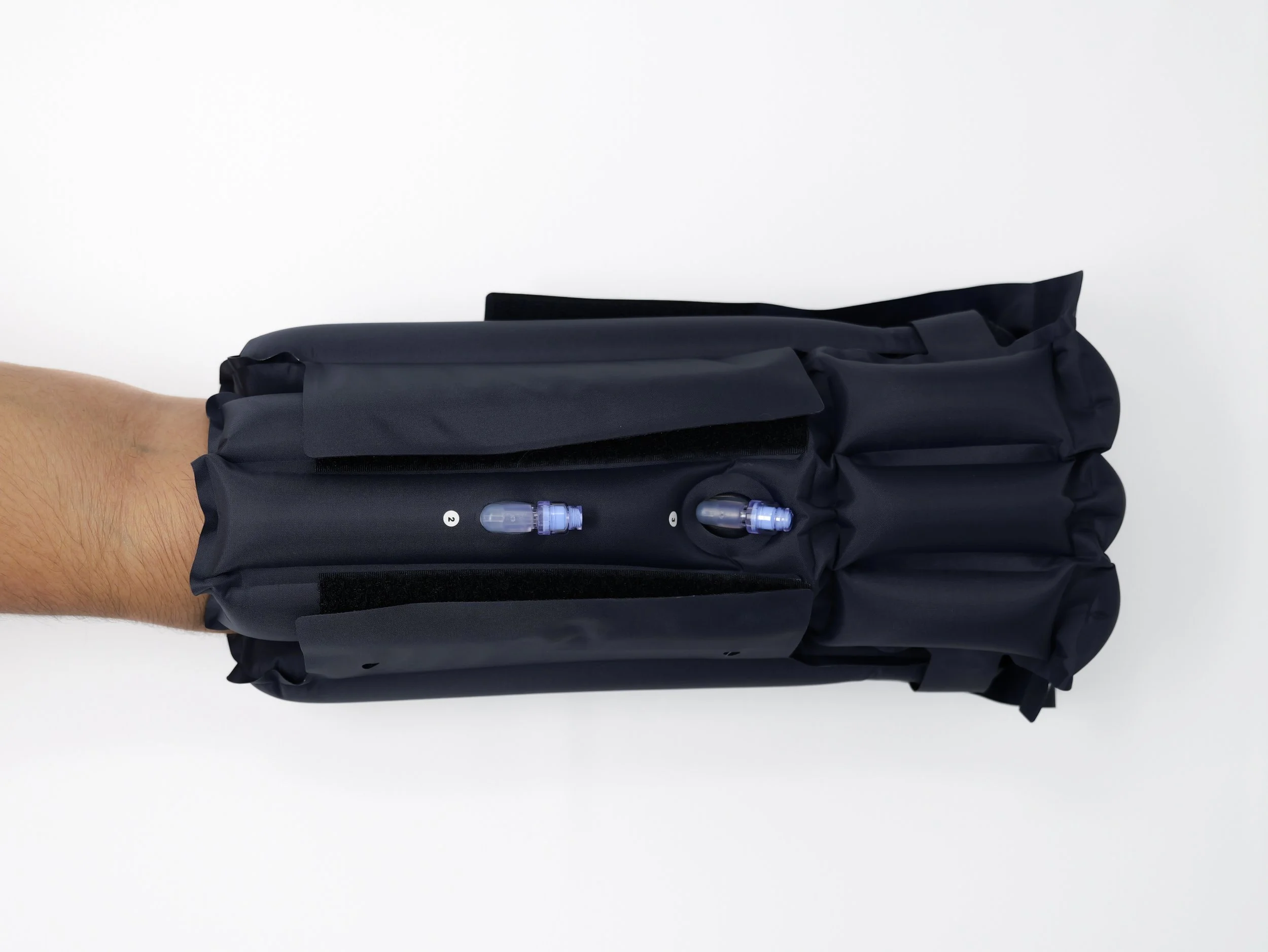 Patients should not remove the device without provider instruction to do so. If the patient is experiencing symptoms such as tingling or numbness of the hand or fingers, remove air pressure from the bladder(s) while maintaining device structure. If the symptoms persist, the patient should contact their provider immediately.