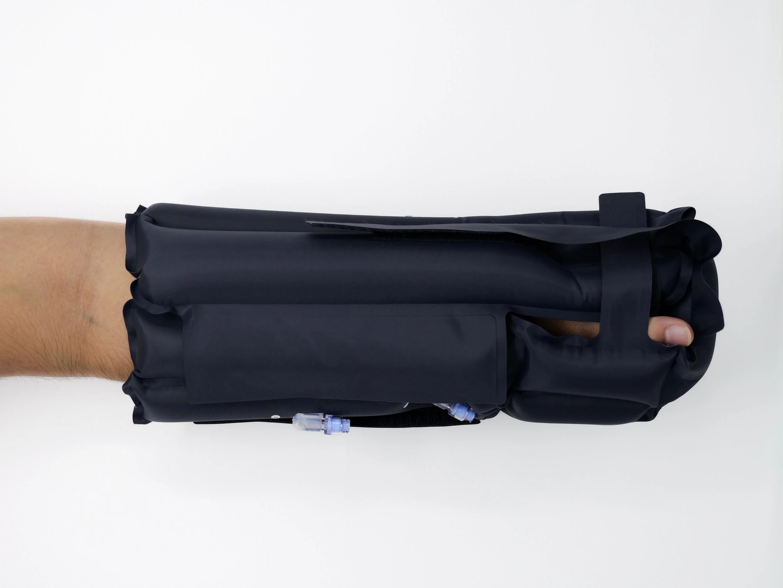 Apply SafeSplint at the time of upper extremity injury prior to obtaining professional orthopedic attention. Comfortably inflate SafeSplint to fit to the patient hand in a safe anatomical position while rigidly immobilizing the fracture for patient comfort for up to fourteen (14) days. Remove and reapply the splint by the provider when necessary and adjust air pressure by the patient for comfort.